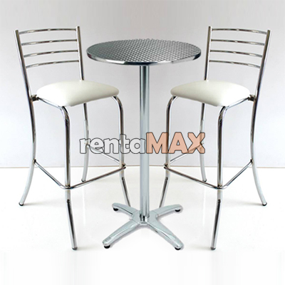 Rentamos Bancos altos con respaldo y descansa pies, asientos acojinados, son apilables de estructura metálica.